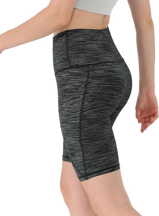 Women'S 9" High Waisted Biker Shorts with Pockets, Tummy Control Non See through Workout Sports Athletic Running Yoga Shorts, Jacquard Black, Small