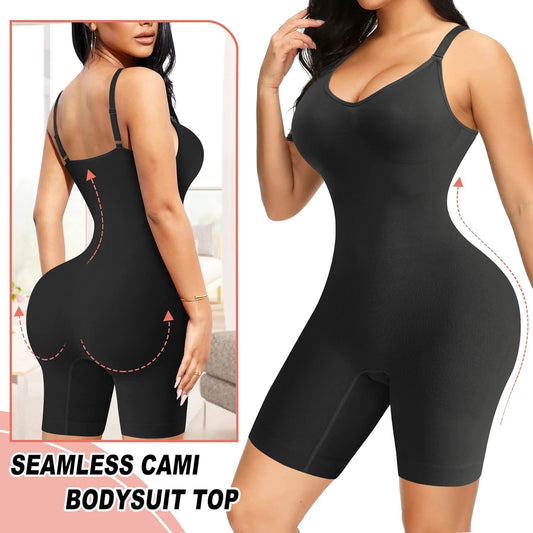 Women Seamless V Neck Bodysuit Tops Slim Fit Full Body Shaper Comfort Shapewear Butt Lifter Leotard Stretchy Jumpsuit (Black, Medium/Large)